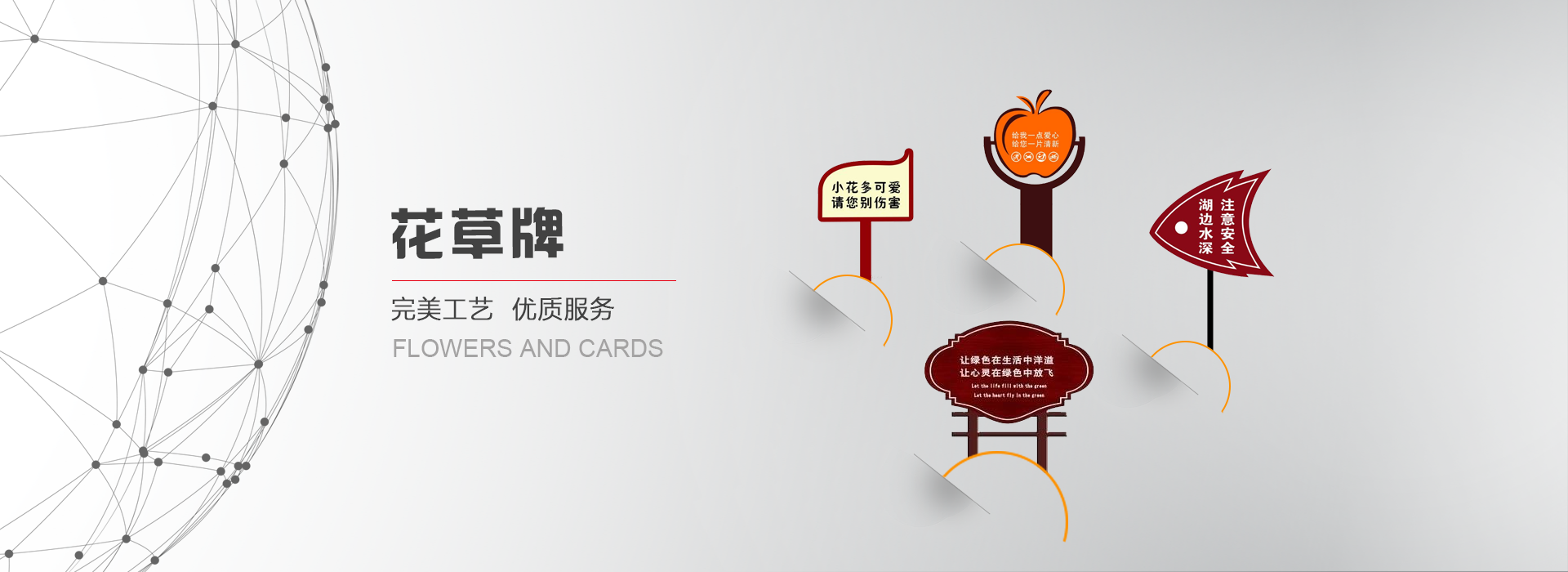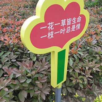 花草牌是指樹立在花草叢中用于提示愛護(hù)的標(biāo)識牌。又稱牌或草牌,屬于溫馨提示的范疇。花草牌一般較矮,一般高度在40公分到1.2米之間,是雙面,厚度一般是4公左右。有鋼板的,有純實(shí)木的,或上述材質(zhì)相互結(jié),制作工藝為: